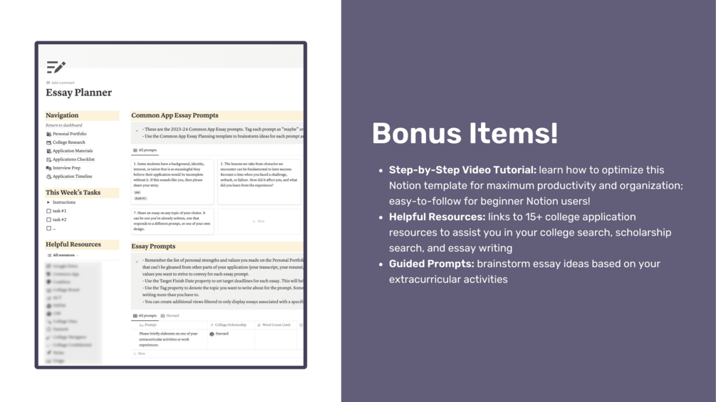 - An Essay Planner page to brainstorm, draft, and organize your personal statement and supplemental essays.